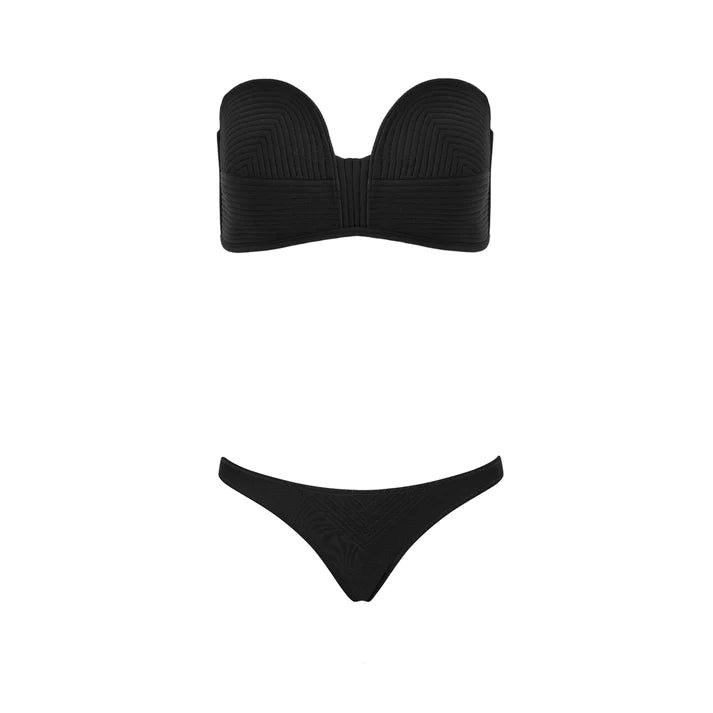 This elegant bikini features a structured top that offers excellent support for the bust, with a clasp closure for added security and comfort.